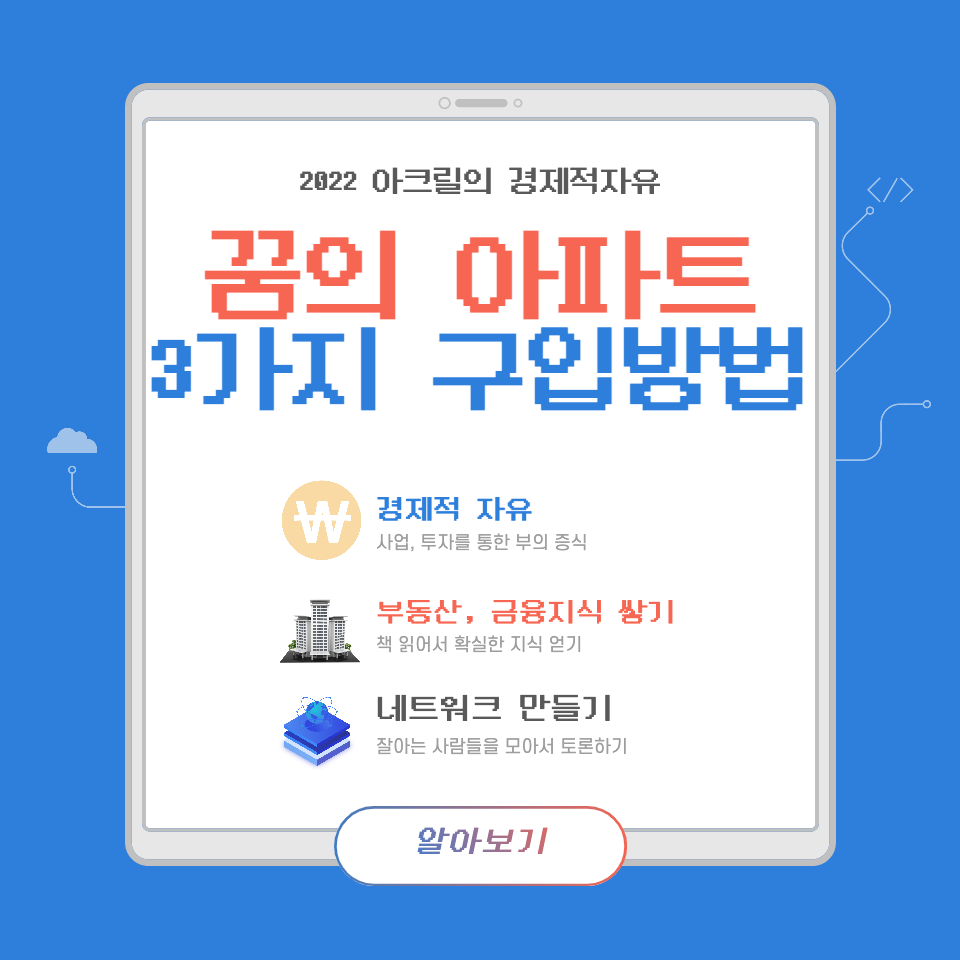 솔직히 말하면 나 또한 경제적 자유를 꿈꾸며 꿈만 같은 아파트에 살고 싶다. 사랑하는 아내와 딸, 아들을 키우며 행복한 가정을 만들고 싶기 때문이다. 어쨌든 꿈의 아파트를 실제로 구입 할 수 있는 현실적인 방법 3가지를 정리해보도록 하겠다.